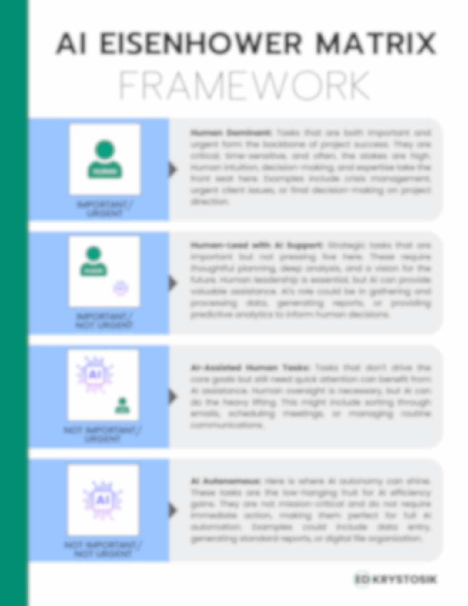 Subscribe now and get instant access to my AI-ify Decision Framework, plus weekly advice, industry, and engaging discussions from a community of innovative project leaders.- Ed